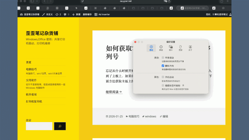 在 macOS 下使用普通鼠标有一个最大的问题,那就是滚轮滚动的时候是一格格的,如果没体验过触控板的还好,体验过的人就会感觉到非常割裂的体验,解决方法是使用软件 Mos